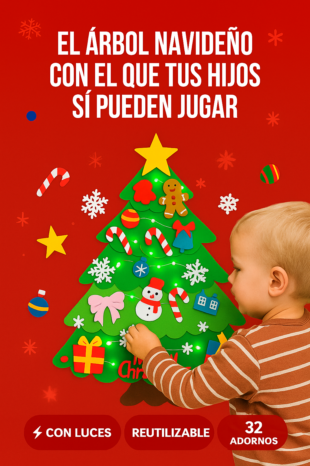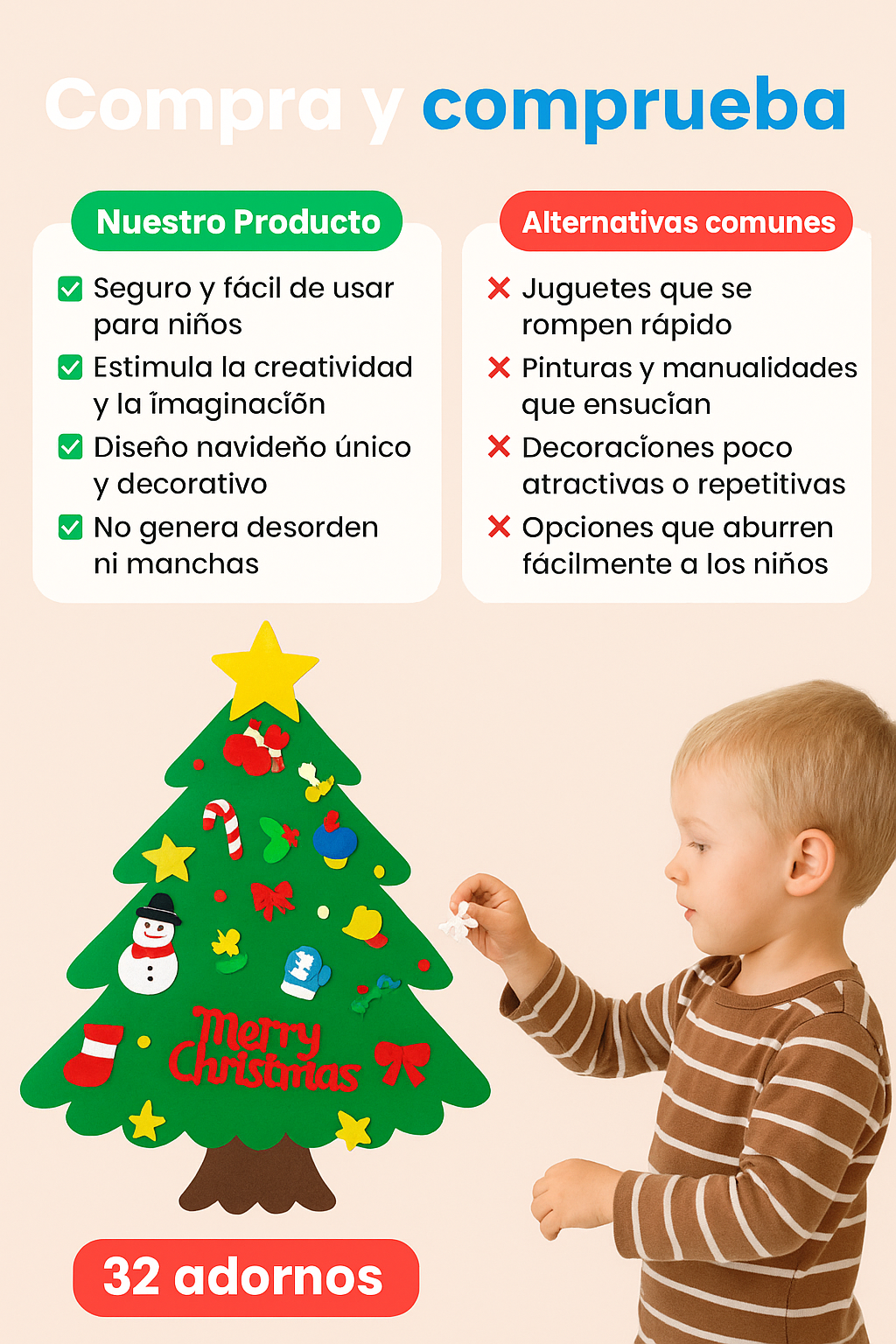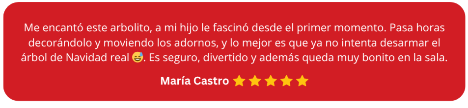 Mi hijo pasa horas jugando con el arbolito, acomoda los adornos una y otra vez. Antes me dañaba los del árbol grande, ahora se divierte con este y yo estoy tranquila.