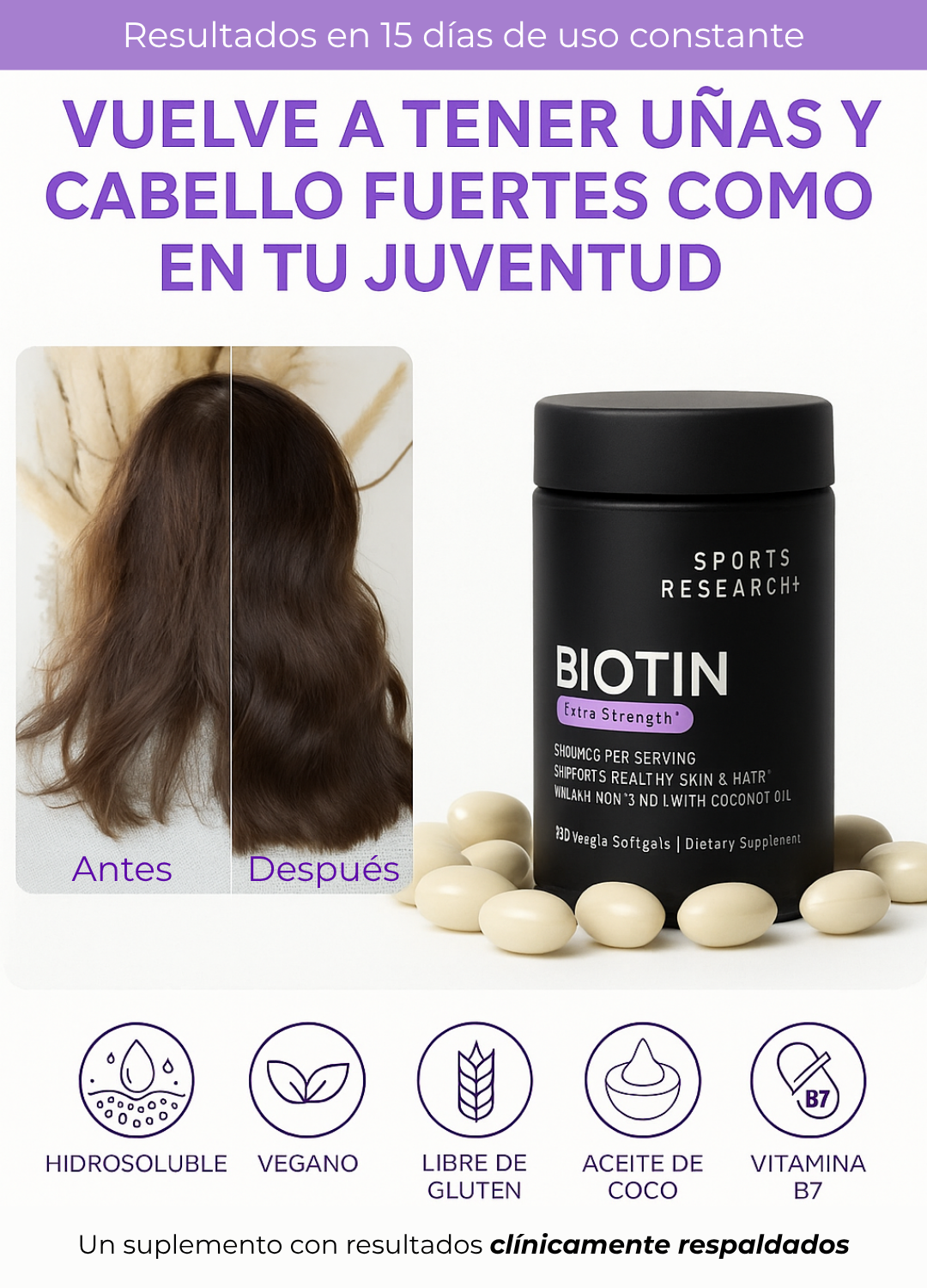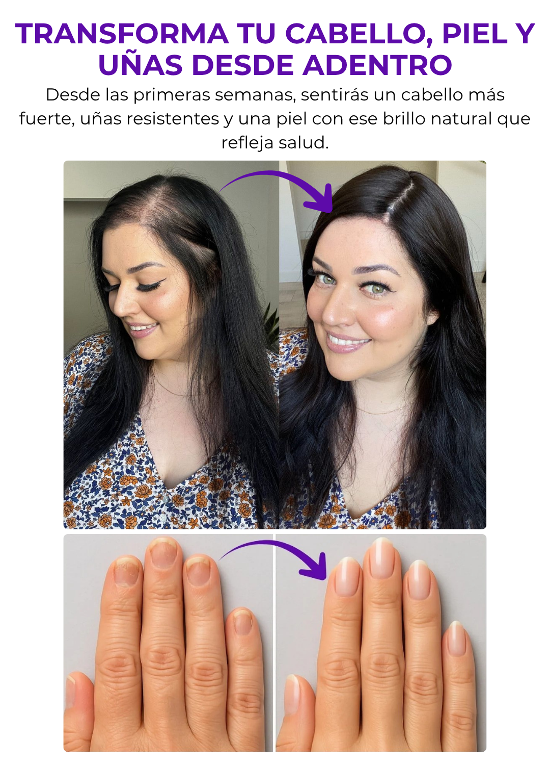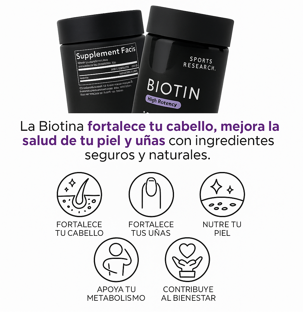 La Biotina actúa desde el interior, fortaleciendo los tejidos responsables del crecimiento del cabello, las uñas y la piel.