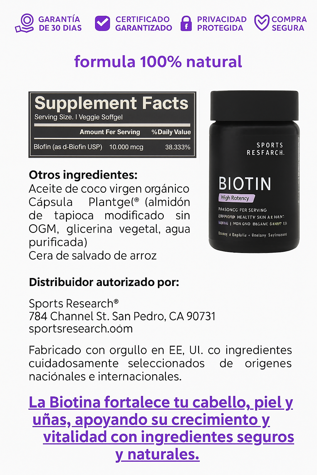 🔹 Estimula la producción de queratina, la proteína clave que da estructura y resistencia.