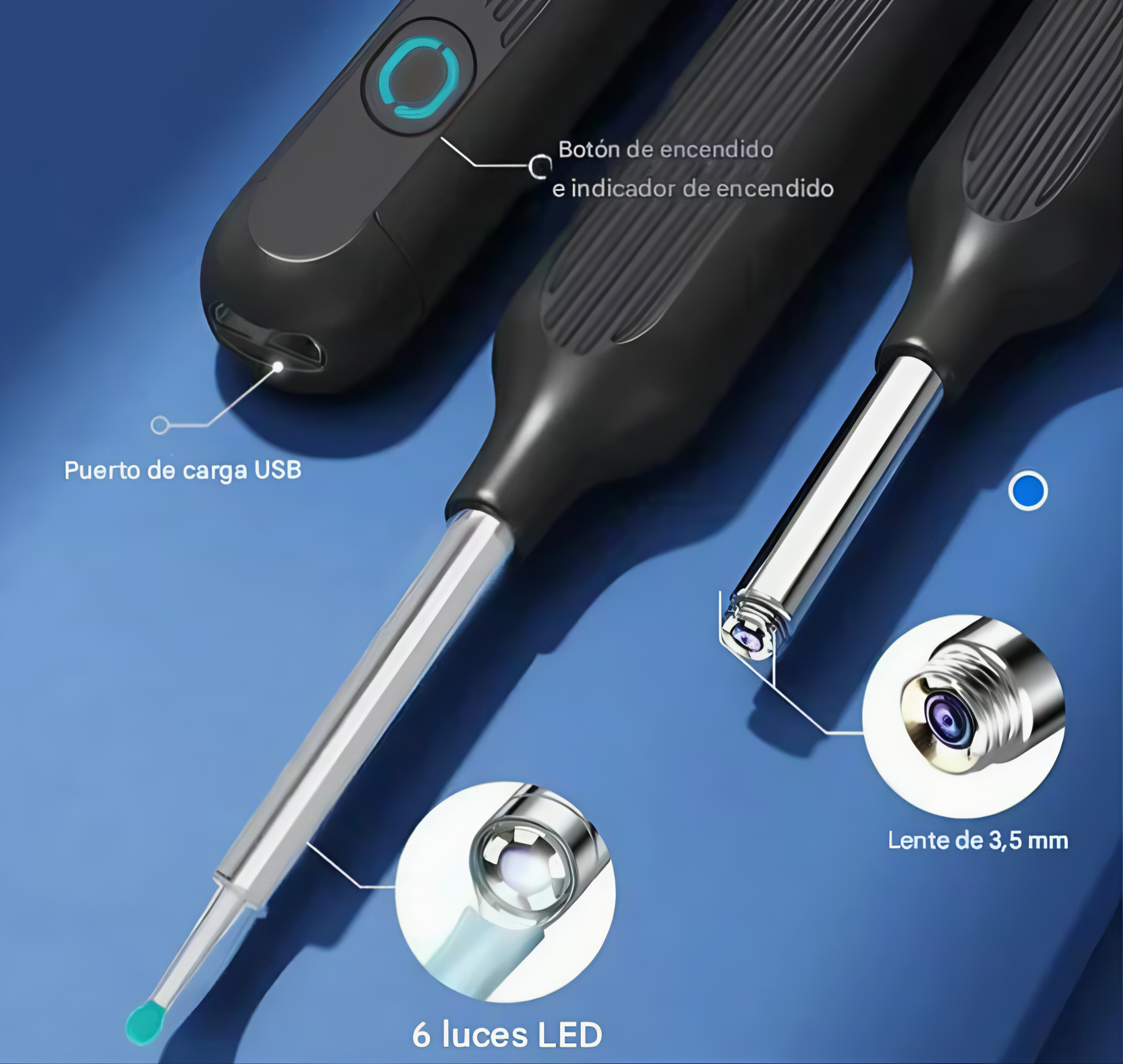 CleanEar el limpiador de Oído con Cámara 4K, es la herramienta más avanzada para una limpieza profunda, sin riesgos y con total precisión.