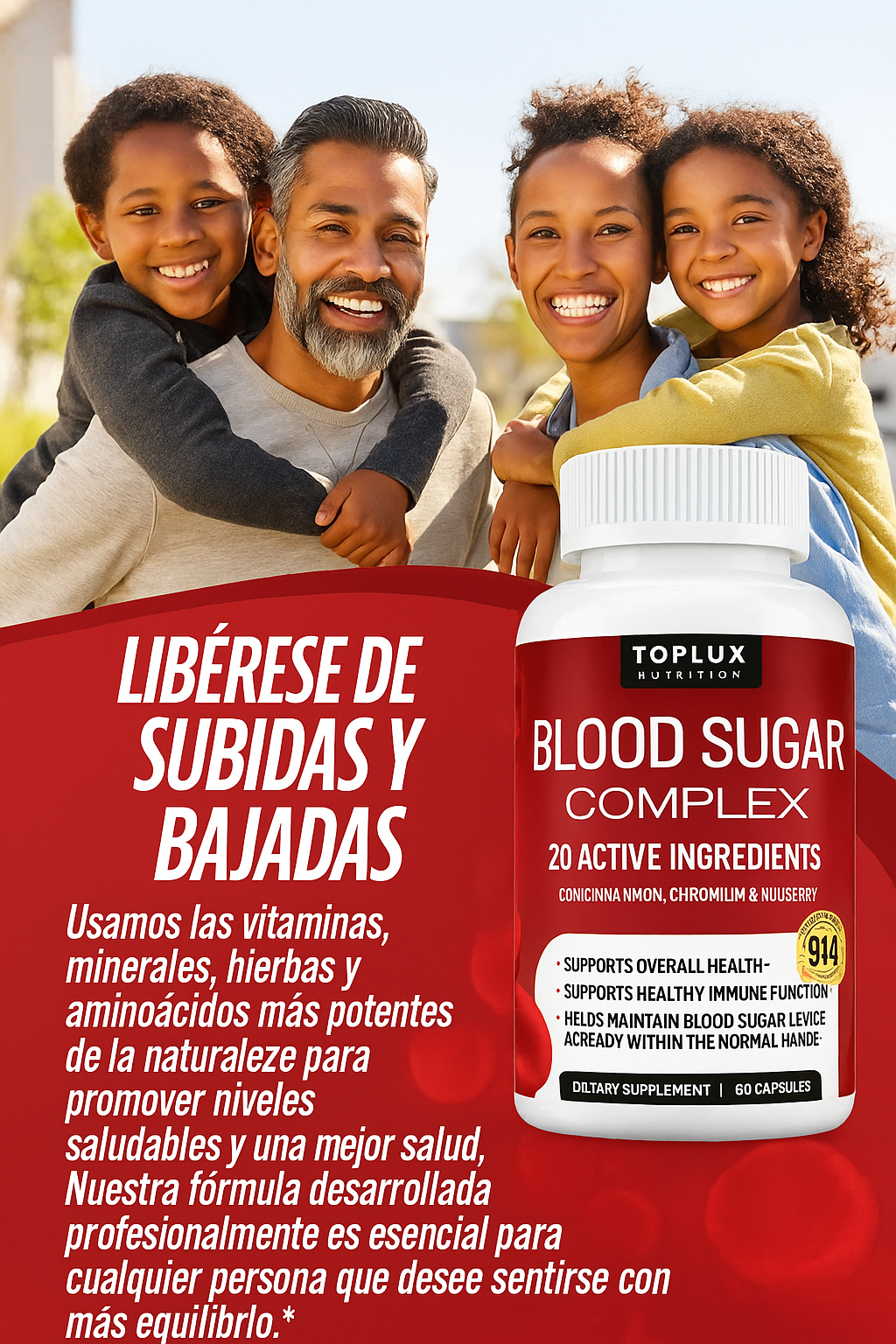 Olvídate de las subidas y bajadas de azúcar. Con Blood Sugar Complex, obtienes energía constante, una mente despejada y la libertad de disfrutar cada momento sin preocuparte por las bajas. Siéntete equilibrado, activo y dale todo lo quenecesitas a quienes más te importan.