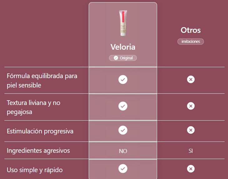Con el uso constante, tu confianza e intimidad se transforman por completo. Un frasco de Veloria™ mantiene el deseo vivo, la conexión fuerte y el placer consistente.