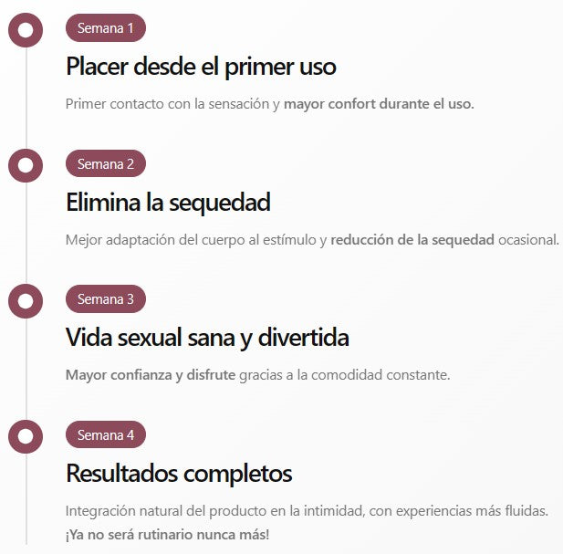 Las sensaciones se intensifican. Excitación real en segundos, no en 45 minutos. La lubricación natural fluye. Tu pareja nota tu respuesta. La ansiedad desaparece. El placer se vuelve inevitable.