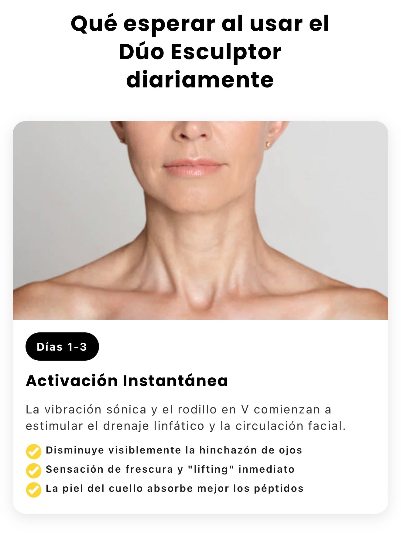 Lo compré principalmente por mi papada y en unas semanas noté la piel mucho más firme. Se ve más definida la zona del cuello.