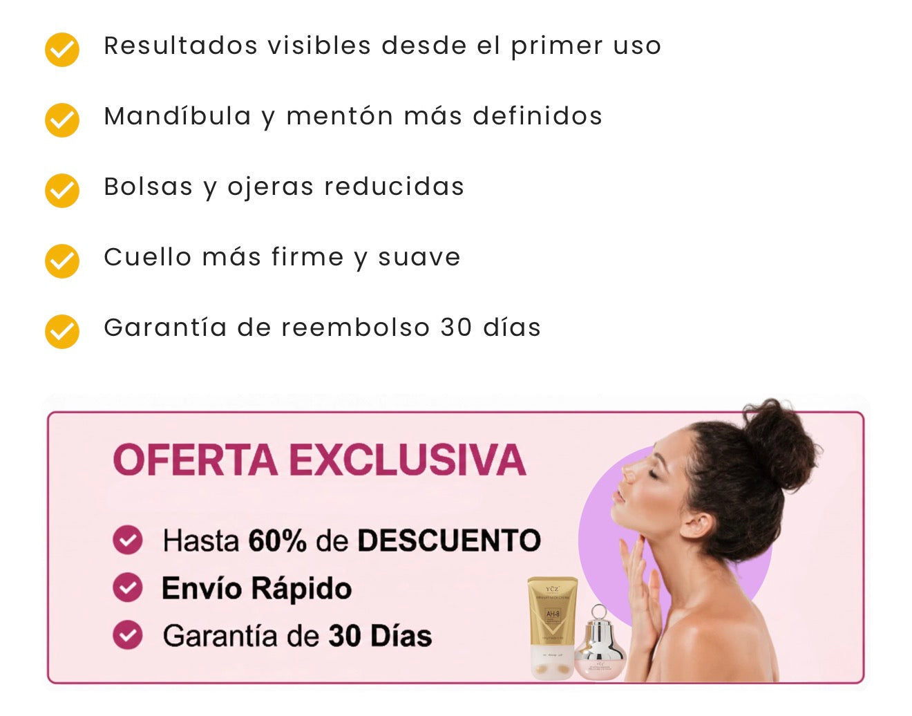 Sentía la piel de la papada flojita y este producto me ayudó a tensarla. Ahora me siento más segura en fotos de perfil.