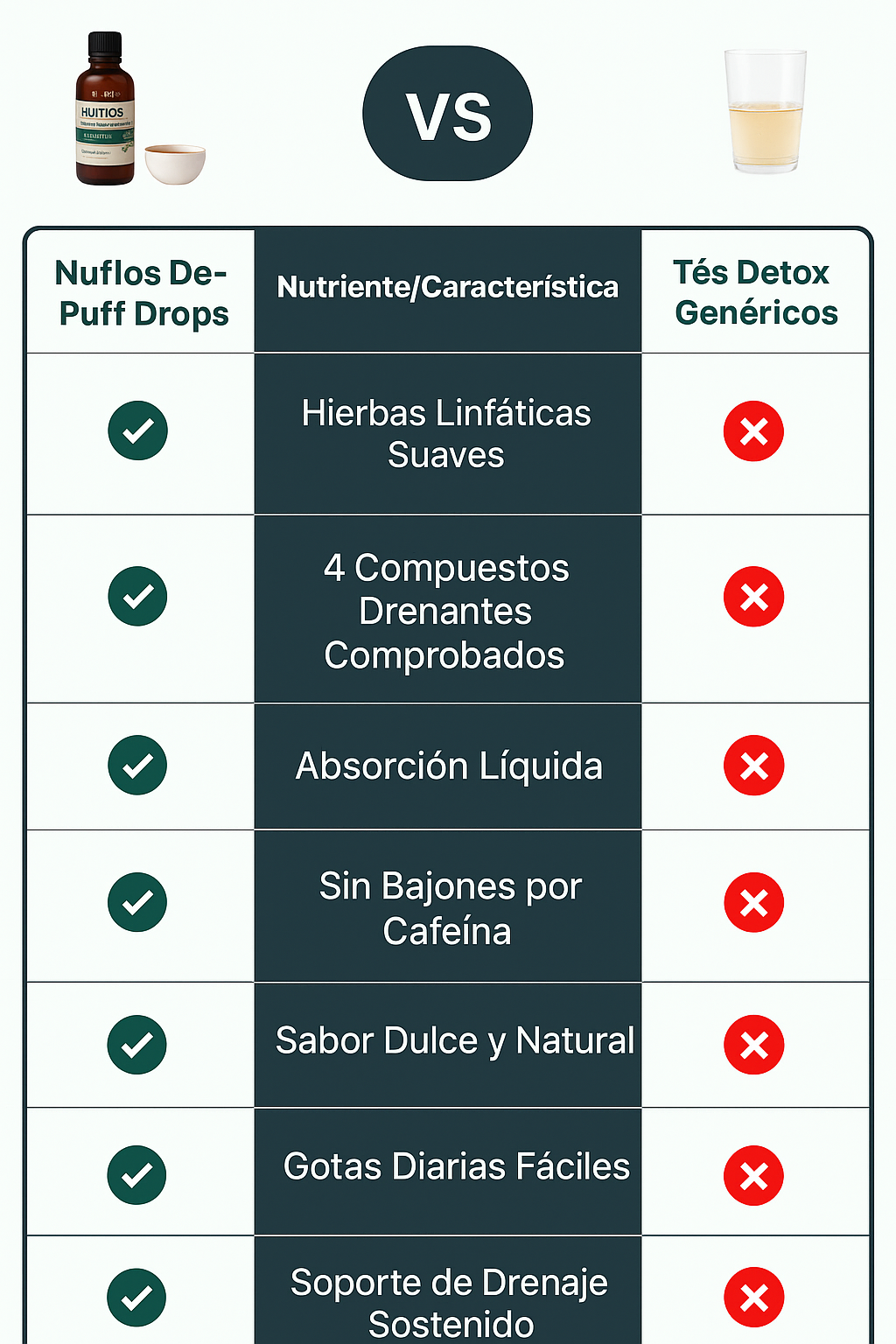 Con las gotas Nuflos De-Puff, estás dándole a tu cuerpo el soporte que necesita para drenarse correctamente y revelar tu figura real — con resultados comprobados.
