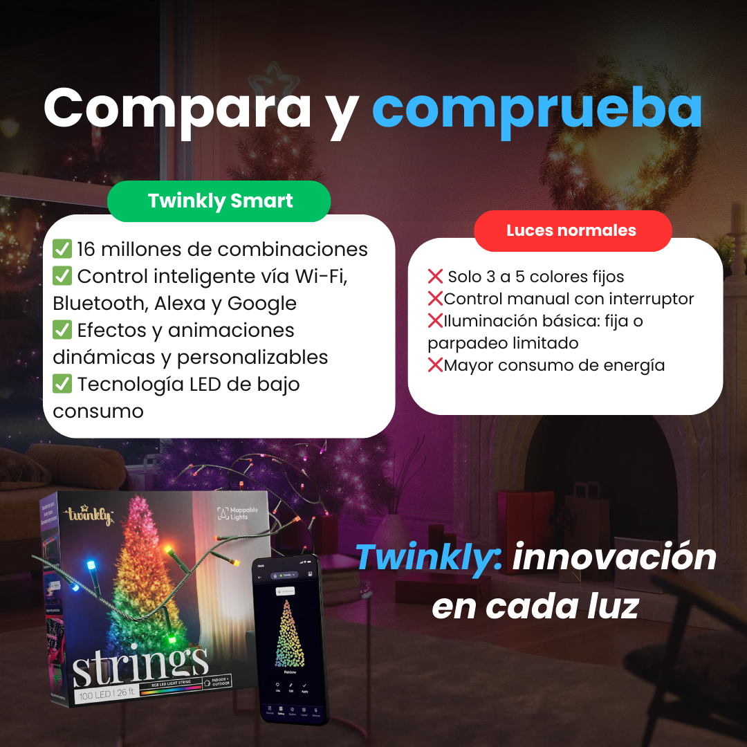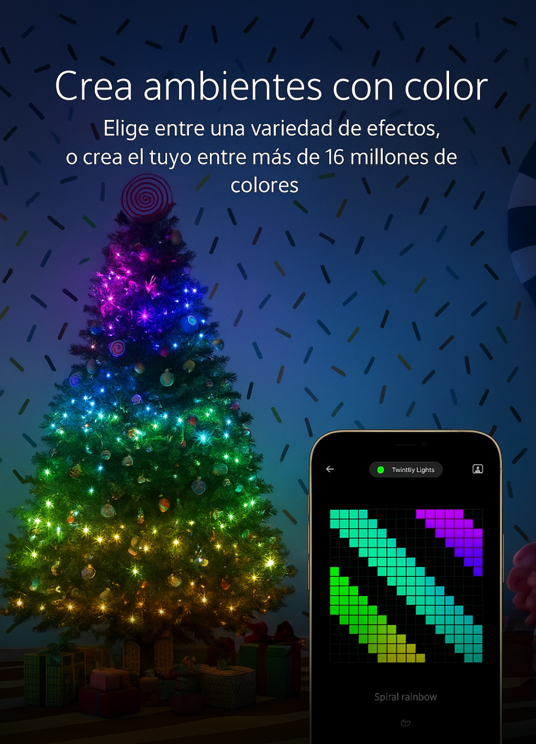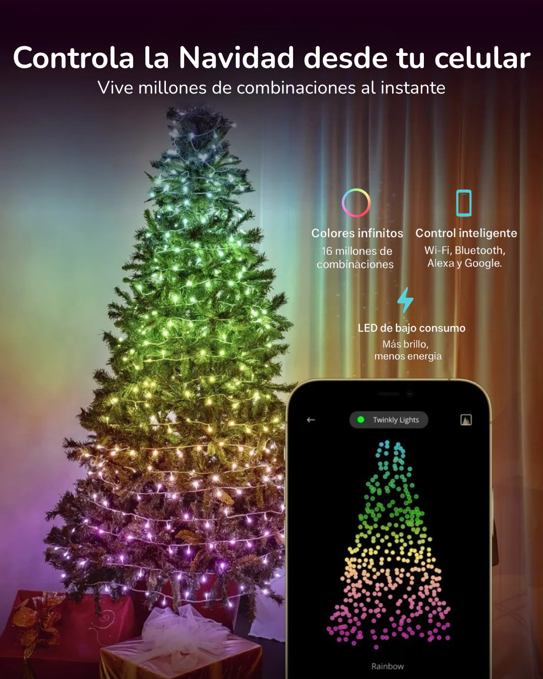 Fácil de instalar y controlar desde el celular. En segundos cambié toda la decoración