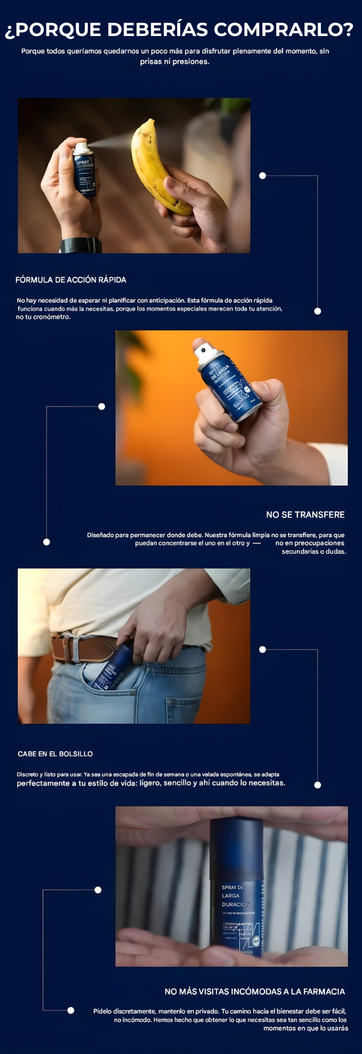 “Siempre me pasaba que todo terminaba antes de lo que quería, y eso me frustraba mucho. Probé este spray sin muchas expectativas… pero fue increíble. Pude disfrutar sin estar pendiente del tiempo, más relajado y seguro. Ella lo notó también”