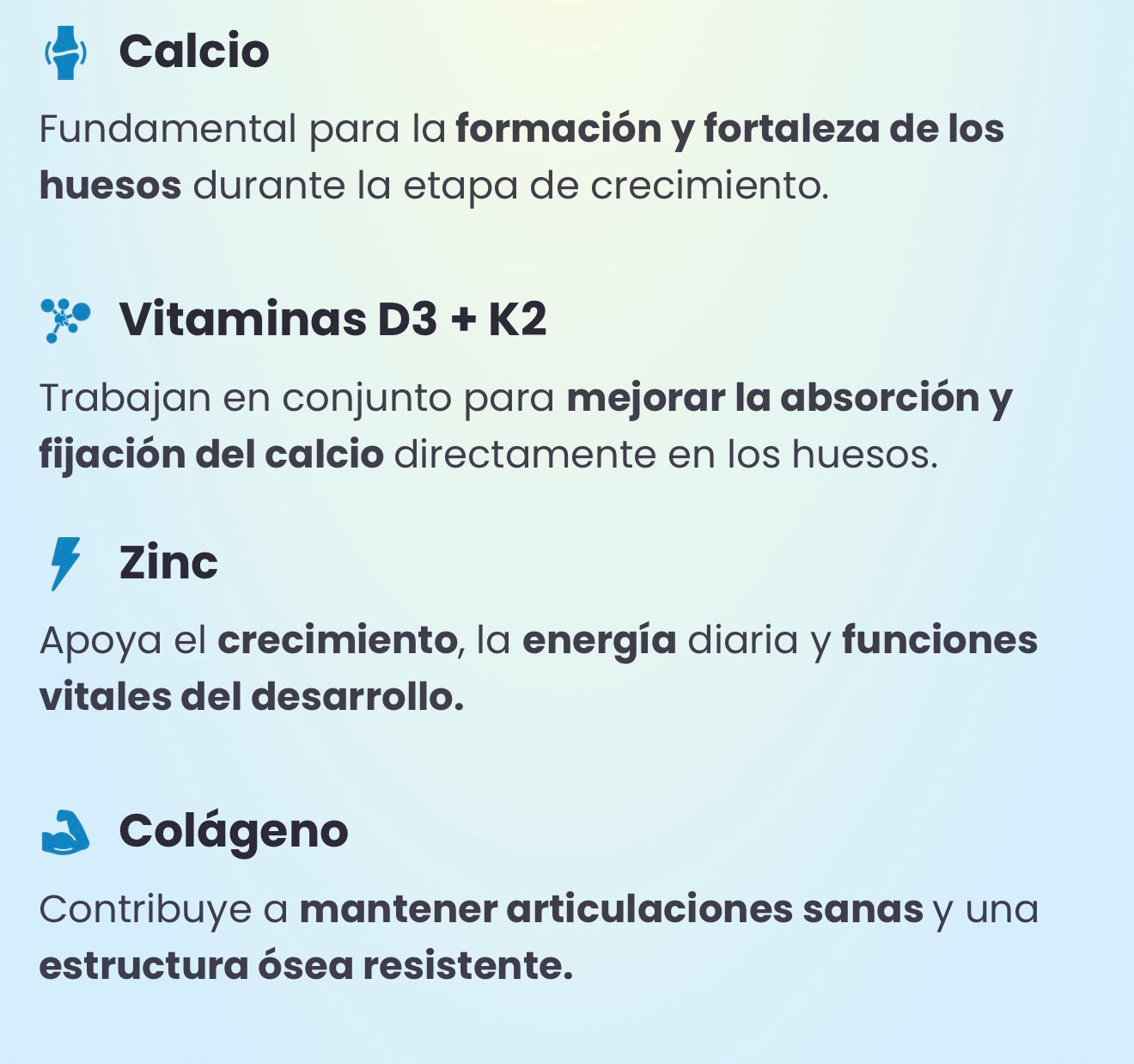 Lo importante es la constancia, ya que el crecimiento y la fortaleza ósea requieren una suplementación continua durante la etapa de desarrollo.