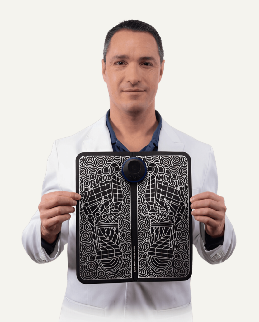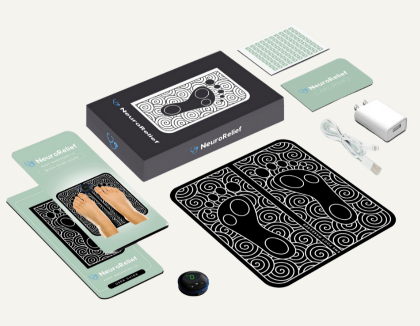 Creamos un sencillo masajeador para usar en casa que utiliza tecnología de estimulación eléctrica neuromuscular para tratar la verdadera causa del dolor neuropático en el pie . Se llama Masajeador de pies NeuroRelief™.
