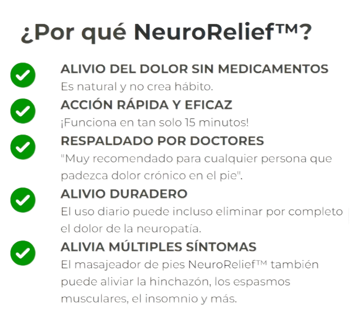 NeuroRelief™ le ayuda a aliviar el dolor, el ardor y el hormigueo sin analgésicos adictivos ni costosas visitas al podólogo