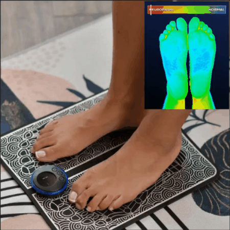 Envía una combinación única de impulsos eléctricos dirigidos profundamente al tejido de los pies y las piernas para ayudar a impulsar la circulación sanguínea , permitiendo que los nervios de los pies reciban el oxígeno que necesitan para recuperarse.
