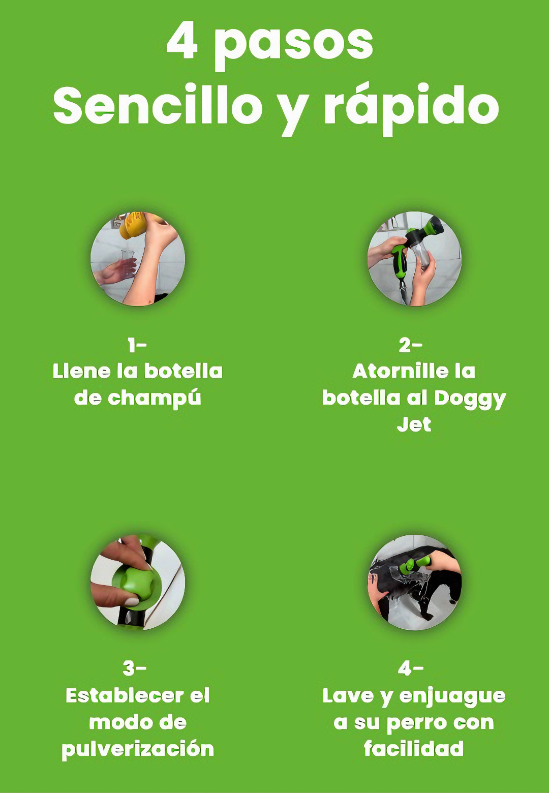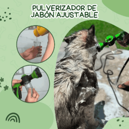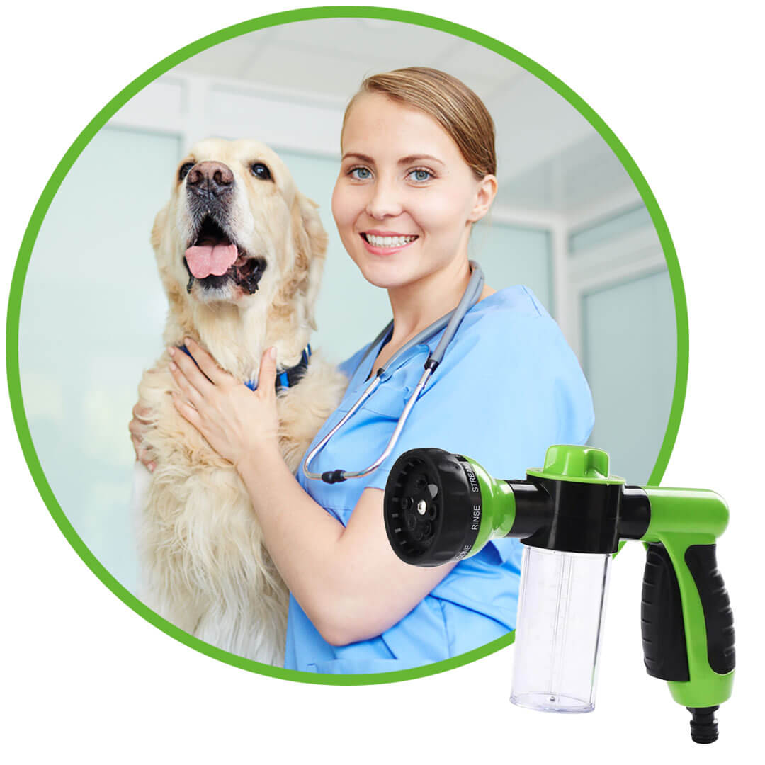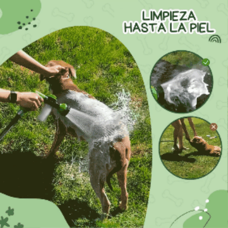 Su boquilla rociadora ayuda a eliminar la suciedad incrustada bajo el pelaje