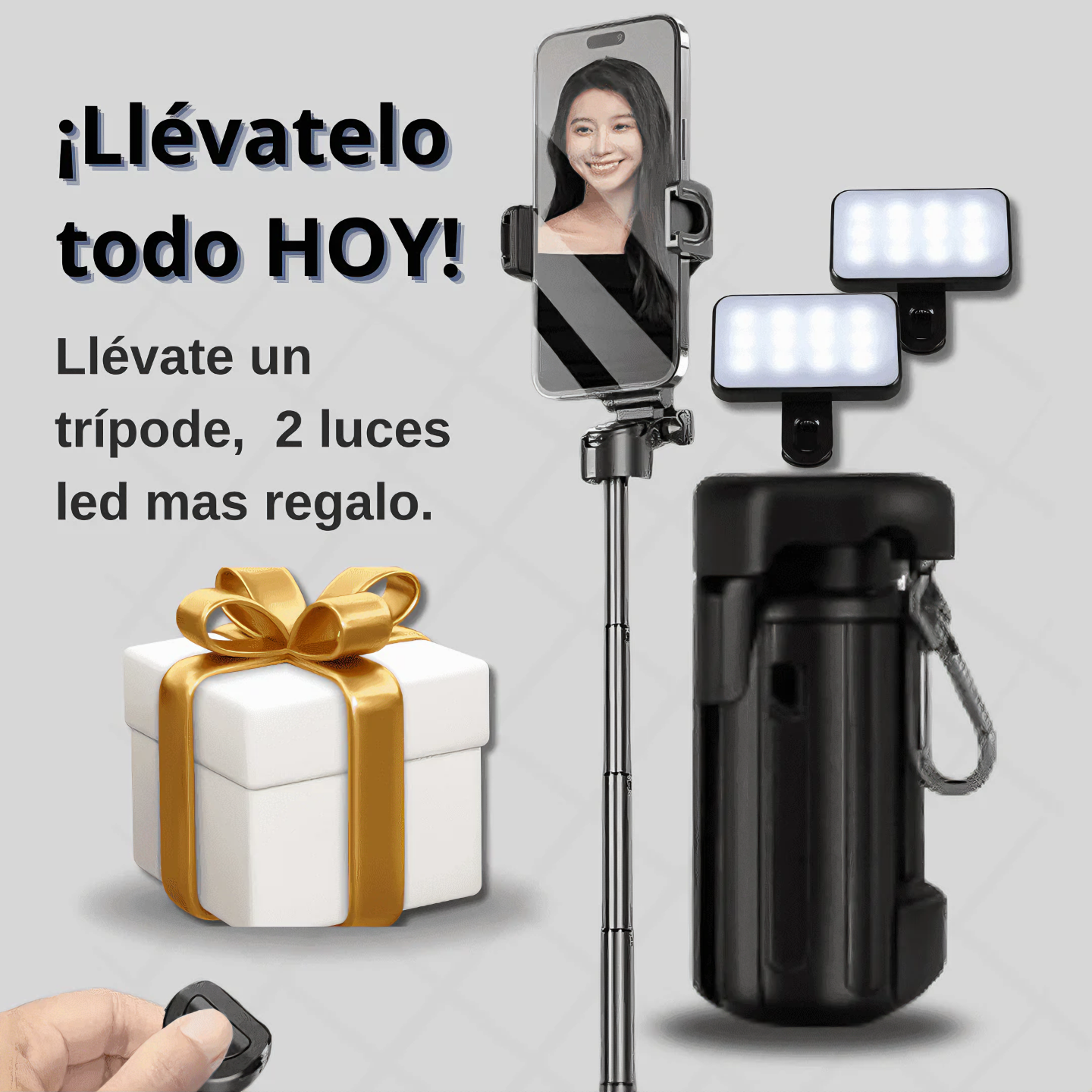 Trípode 4 en 1 + 2 luces LED + control remoto + regalo sorpresa.