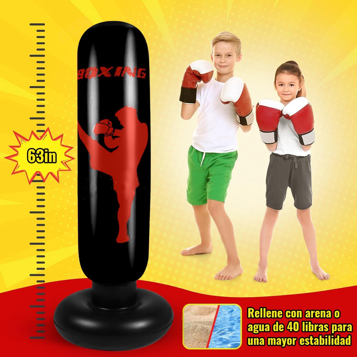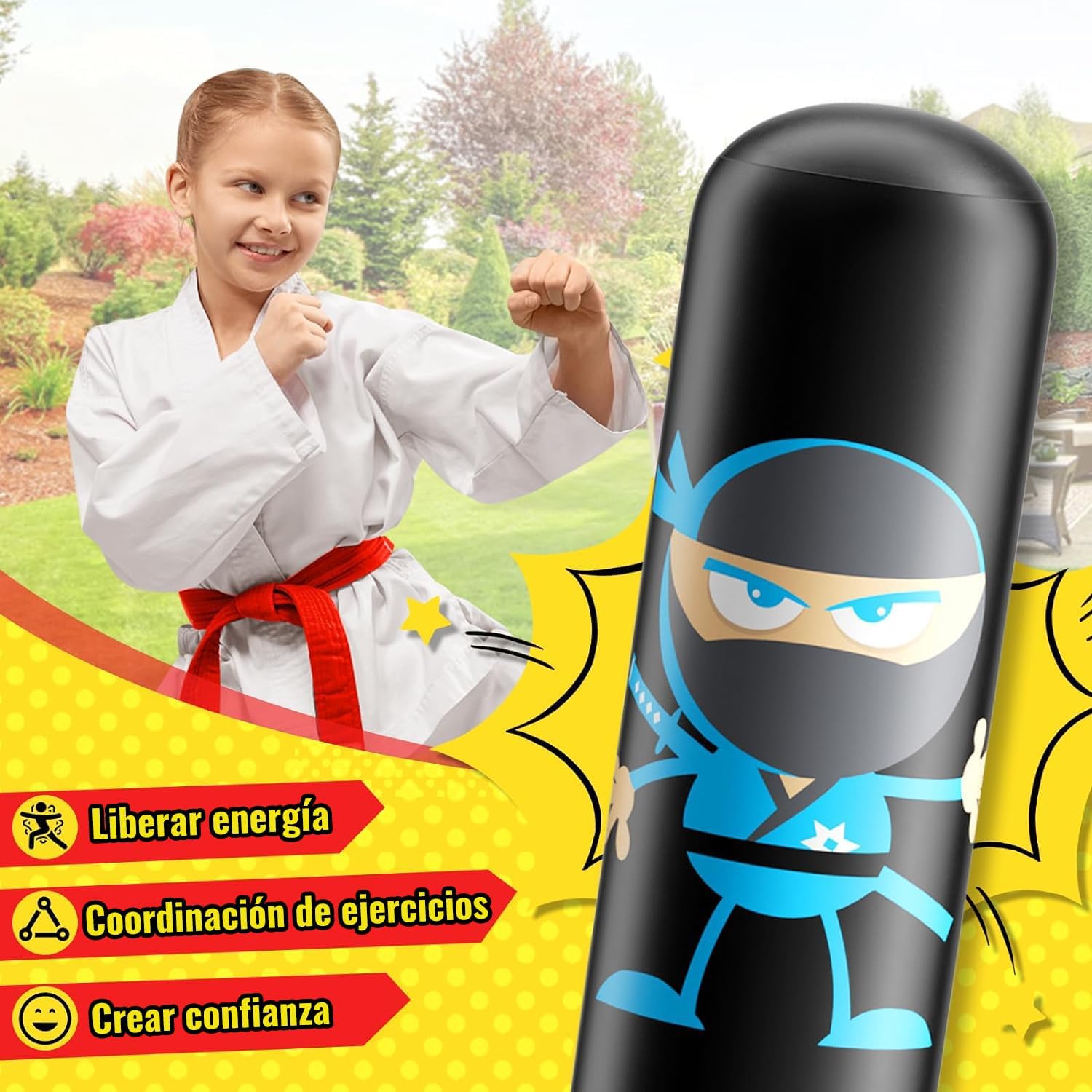 Juego suave y seguro: esta bolsa de boxeo de pie para niños de 5 a 12 años rebota cuando se golpea. La superficie de la bolsa de patada es suave en las manos, no necesita guantes. Los objetivos permiten a los niños practicar de manera más eficiente ayudando con las práctica de artes marciales.