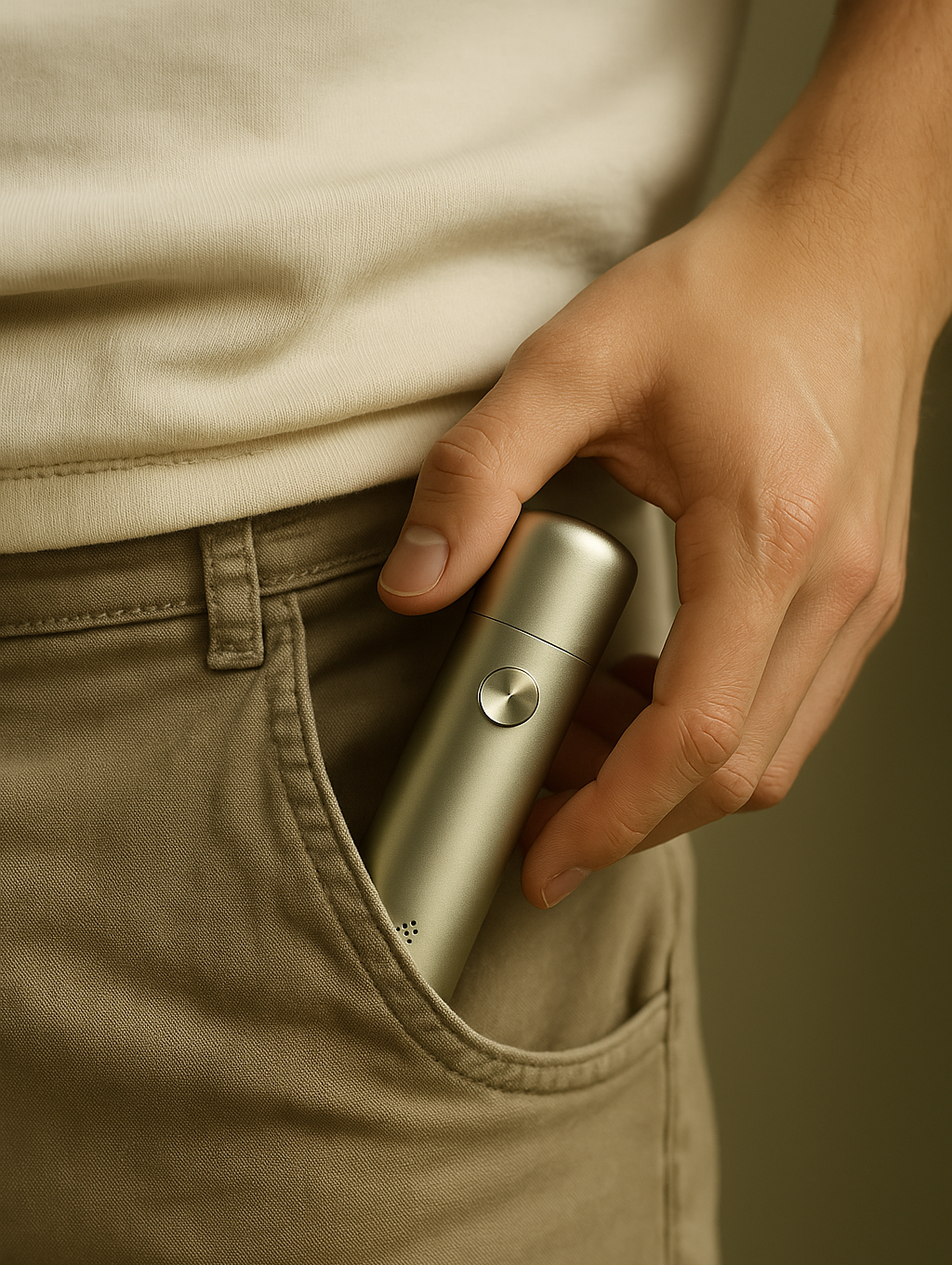 Dispositivo portátil y elegante que elimina el mal aliento desde su origen, gracias a su tecnología de microatomización y fórmula natural.